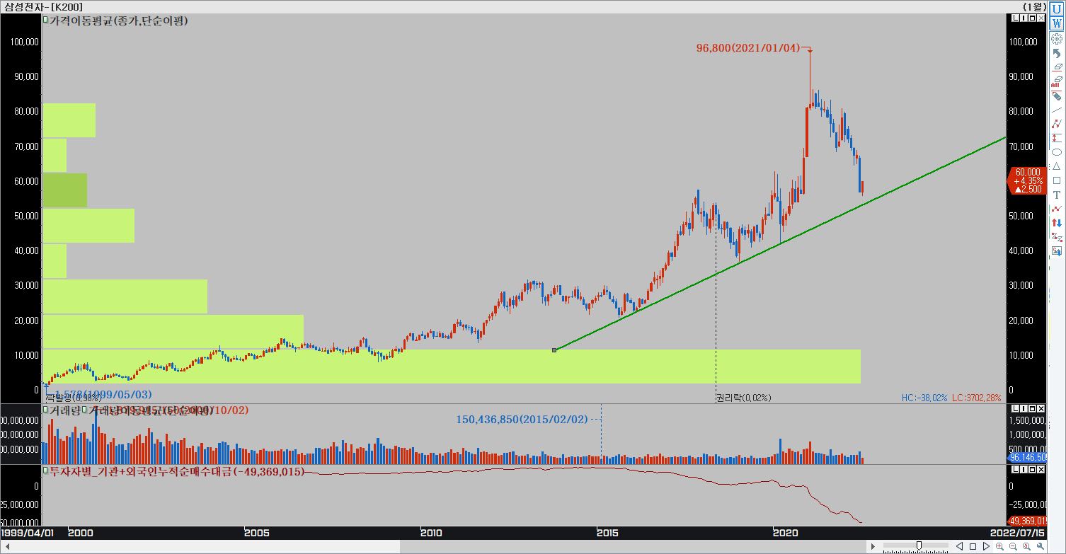 삼성전자는 20년동안 꾸준히 우상향한 종목이다.