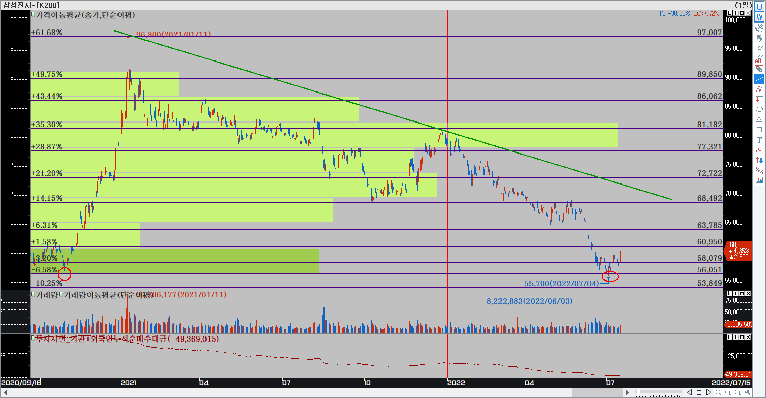 1. 이미 물려있다 = 삼성전자 안 하면 뭐할까... 꾸준히 모아가는 적금식 매매를 권한다. 지금도 매우 싼 가격이다.